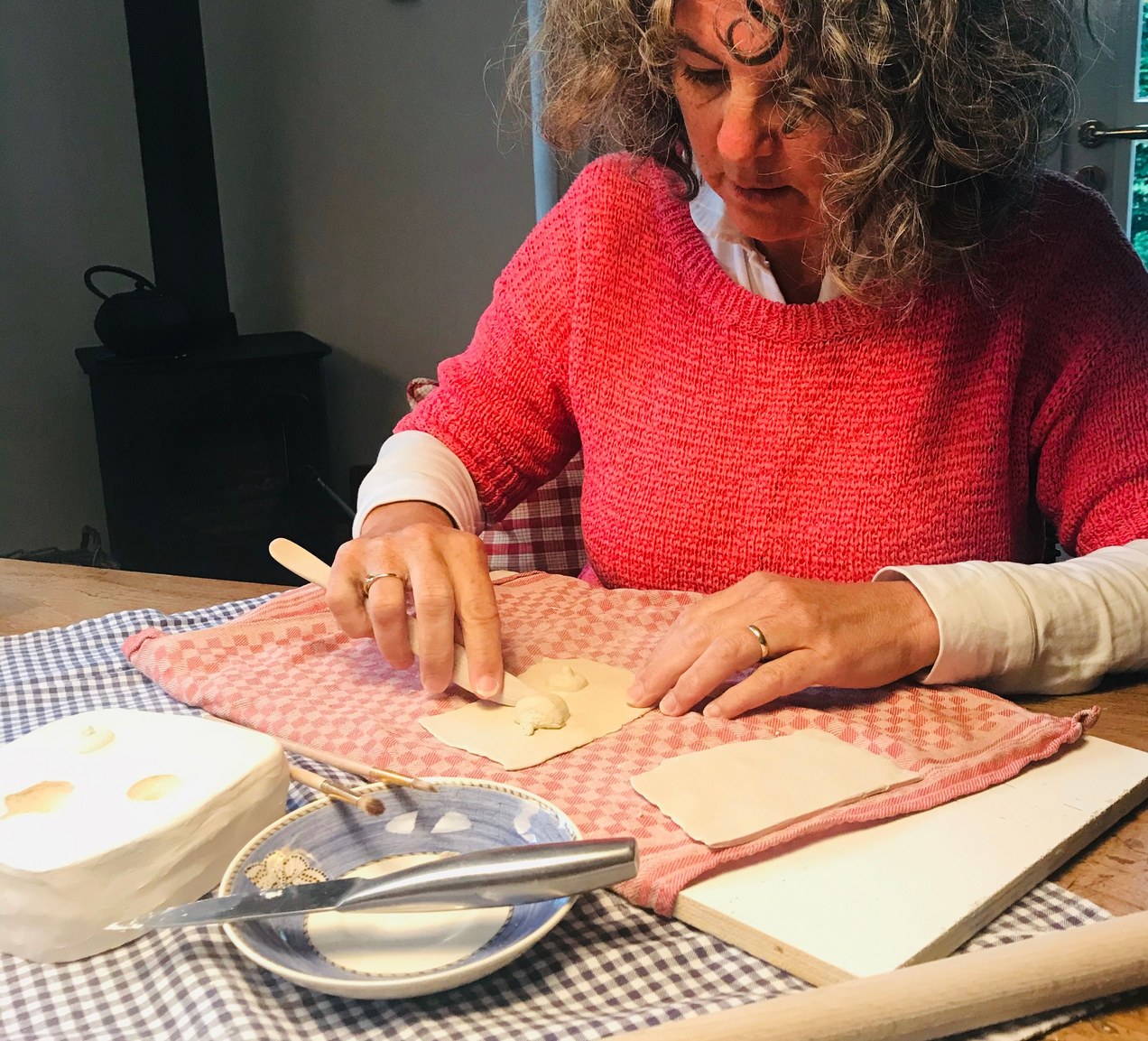 Er is altijd wel iets te doen. Kan de oven al open? Zijn de werkstukken die aan het drogen zijn in orde? Soms werk ik aan mijn eigen werkstukken van porselein. En vier keer per week heb ik een vaste groep in mijn atelier. Uiteraard staat de deur ook regelmatig open voor workshops.
